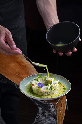 Starten Sie Ihr Erlebnis mit einem Glas Champagner und einer Meeresdelikatesse – von Kaviar bis zu auf Zedernholz geräucherten Sardinenfilets in Sushi-Qualität.